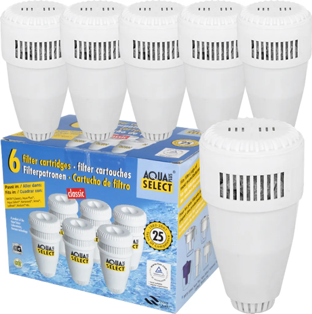 Für größten Wassergenuss! Die Aqua Select Vorteilspackung besteht aus 6 Einweg-Filterpatronen mit hochwirksamem Filtergranulat gefüllt, einzeln in Folie eingeschweißt.