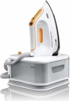 Die neue Braun CareStyle Dampfbügelstation vereint die Power eines Dampfbügeleisens mit kompaktem Design und praktischer Handhabung. So sparen Sie 50 % mehr Zeit und Platz. Spart 50% Zeit (im Vergleich zum Braun TS 1 Dampfbügeleisen, interner Labortest) und 50% Platz (im Vergleich zur Braun IS 7144 Dampfbügelstation).
