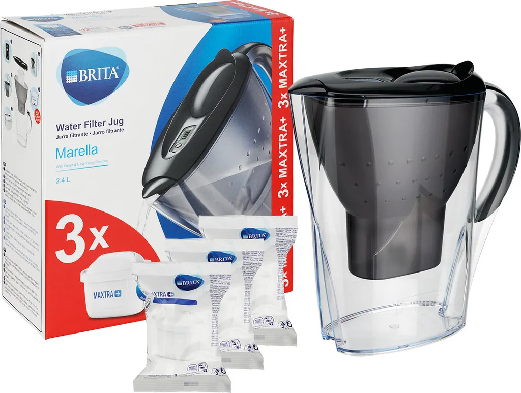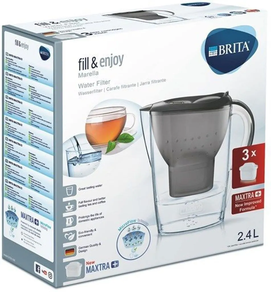 Brita Fill&Enjoy, Pitcher-Wasserfilter, 2,4 l, Graphit, Transparent Wasserfilter Marella graphit inkl. 3 MAXTRA+ Brita Fill&Enjoy. Wasserfiltertyp: Pitcher-Wasserfilter, Produktfarbe: Graphit, Transparent, Fassungsvermögen Wassertank: 2,4 l. Anzahl der Patronen: 3 Stück(e) Gesamtvolumen: 2.4 l, gefiltertes Wasser: 1.4 l|lnkl.