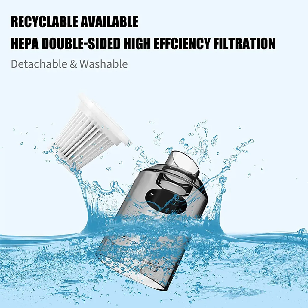 【Langlebiger Filter und leicht zu reinigen】Der Filter des Staubsaugers ist aus Edelstahl und Schwamm, der waschbar und wiederverwendbar ist. Sie können einfach den Auslöseknopf drücken, wenn der Mülleimer voll ist. Nehmen Sie den HEPA-Filter ab und reinigen Sie ihn mit der Bürste oder waschen Sie ihn danach mit Wasser ab. Achtung: Bitte denken Sie daran, ihn zu trocknen, bevor Sie ihn wieder in den Staubsauger legen.