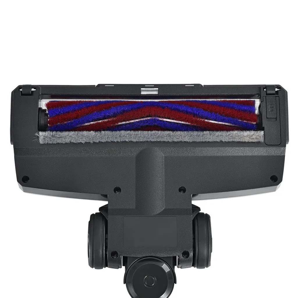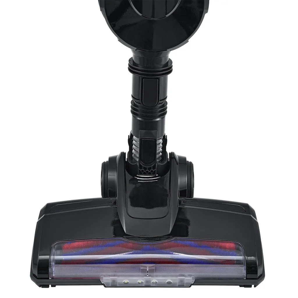 Die flexible Bodendüse ist für Teppich und alle gängigen Hartböden geeignet. Durch das Dreh-Kipp-Gelenk erreichen Sie mit diesem Akkustaubsauger selbst schwer erreichbare Stellen unter dem Sofa oder Bett. Die verbaute LED-Beleuchtung bringt Licht in dunkle Ecken.