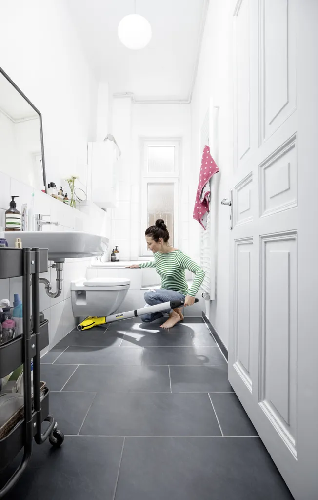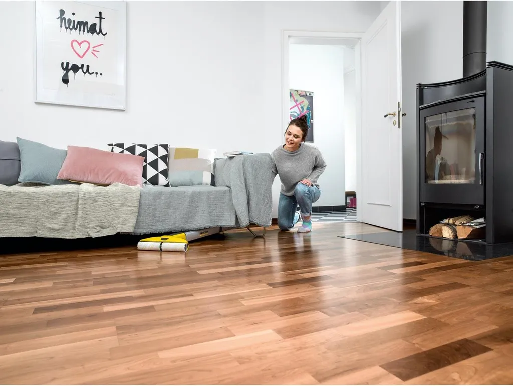 Dank des schlanken Designs lässt er sich problemlos unter Möbeln reinigen und benötigt nur wenig Stauraum. Und durch die geringe Restfeuchte ist es auf allen Böden einsetzbar – sogar auf Parkett.