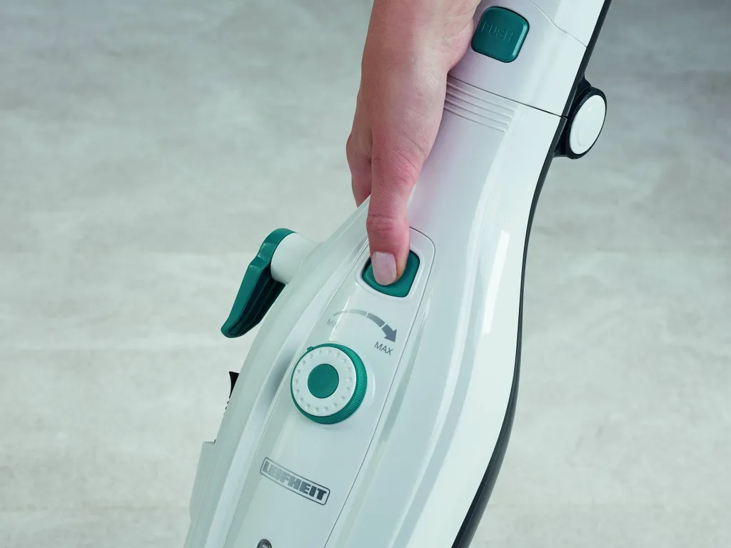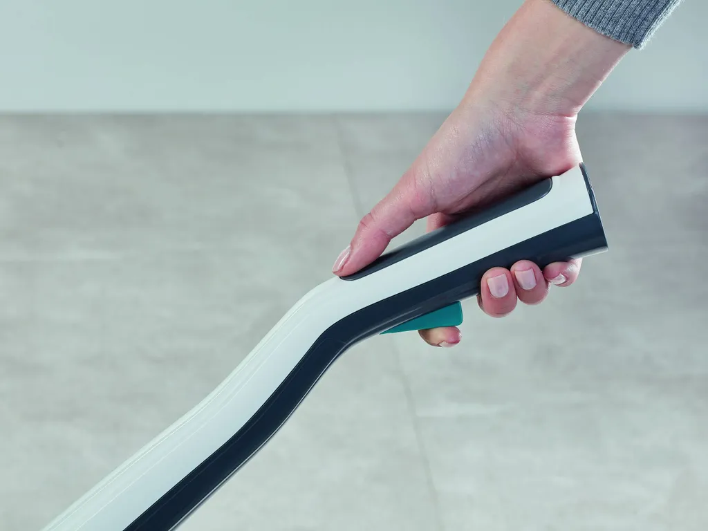 Und so einfach funktioniert es: Der Dampfreiniger benötigt weniger als 30 Sekunden zum Aufheizen und ist dann direkt einsatzbereit. Ist das Wasser heiß, verteilen sechs Düsen den Wasserdampf gleichmäßig im Wischpad. Dabei lässt sich über die stufenlose Regulierung die Dampfmenge optimal auf den Boden abstimmen. Die geringste Stufe eignet sich für versiegelte Holzböden wie Parkett und Laminat, die höchste Stufe reinigt gründlich Fliesen- und Steinböden.