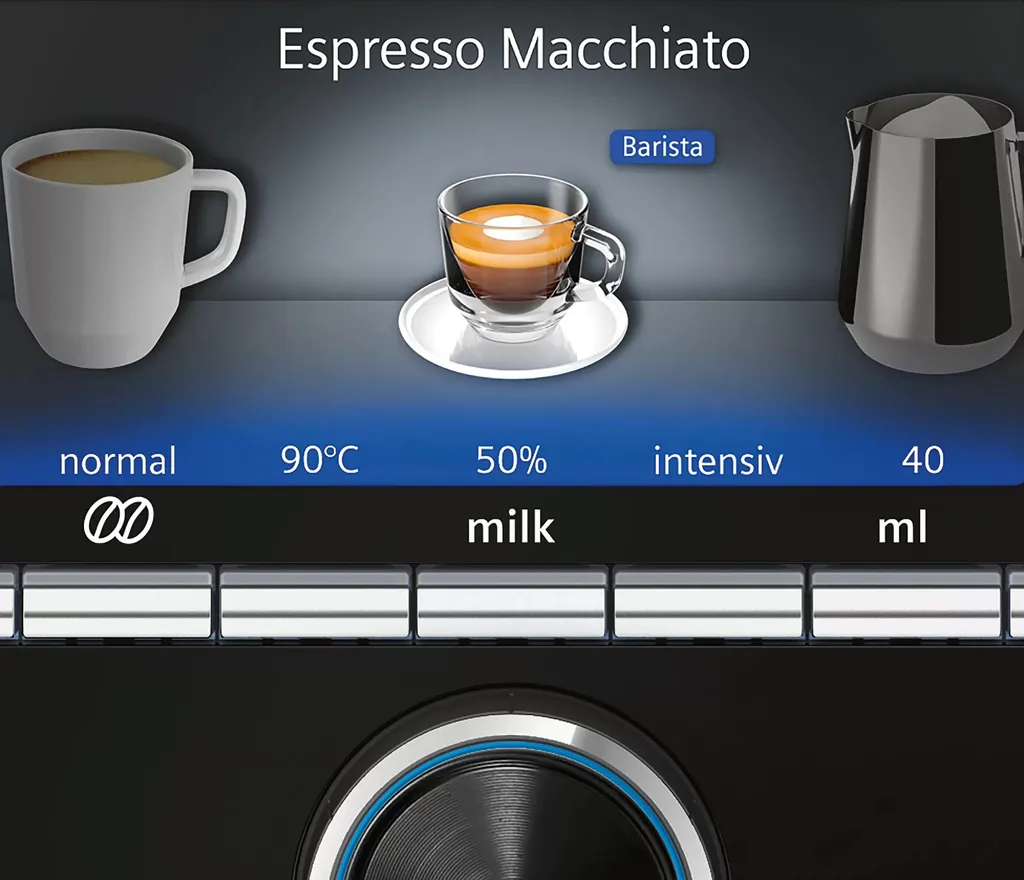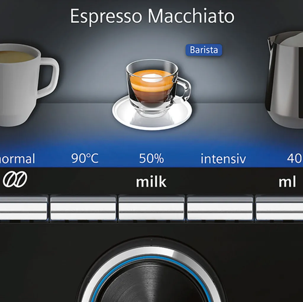 TI9555X9DEDie fünf wesentlichen Parameter für individuellen Kaffeegenuss sind: Stärke, Menge, Temperatur, Kaffee-Milch-Verhältnis und Brühgeschwindigkeit. baristaMode ermöglicht Ihnen viele individuelle Abstufungen. So tauchen Sie in die hohe Kunst der perfekten Kaffeezubereitung ein.
