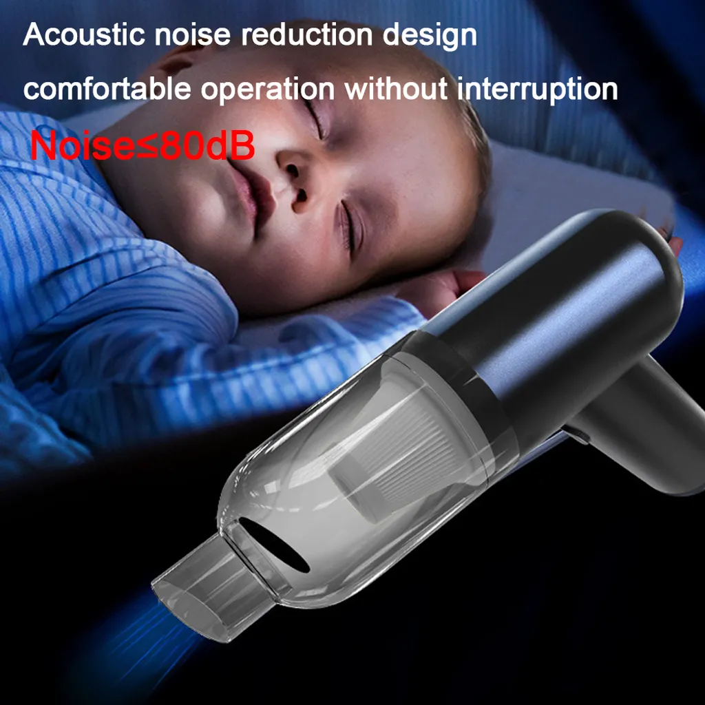 Wiederaufladbarer USB-Staubsauger: Eingebauter 2000 mAh Lithium-Akku, Nennausgangsleistung beträgt 65 W. Es dauert nur 3,5 Stunden, um vollständig aufzuladen und kann kontinuierlich für 20 Minuten verwendet werden, adoptiert die neueste Generation der Schnellladetechnologie und selbstentwickelte intelligente Power-Management-Technologie.