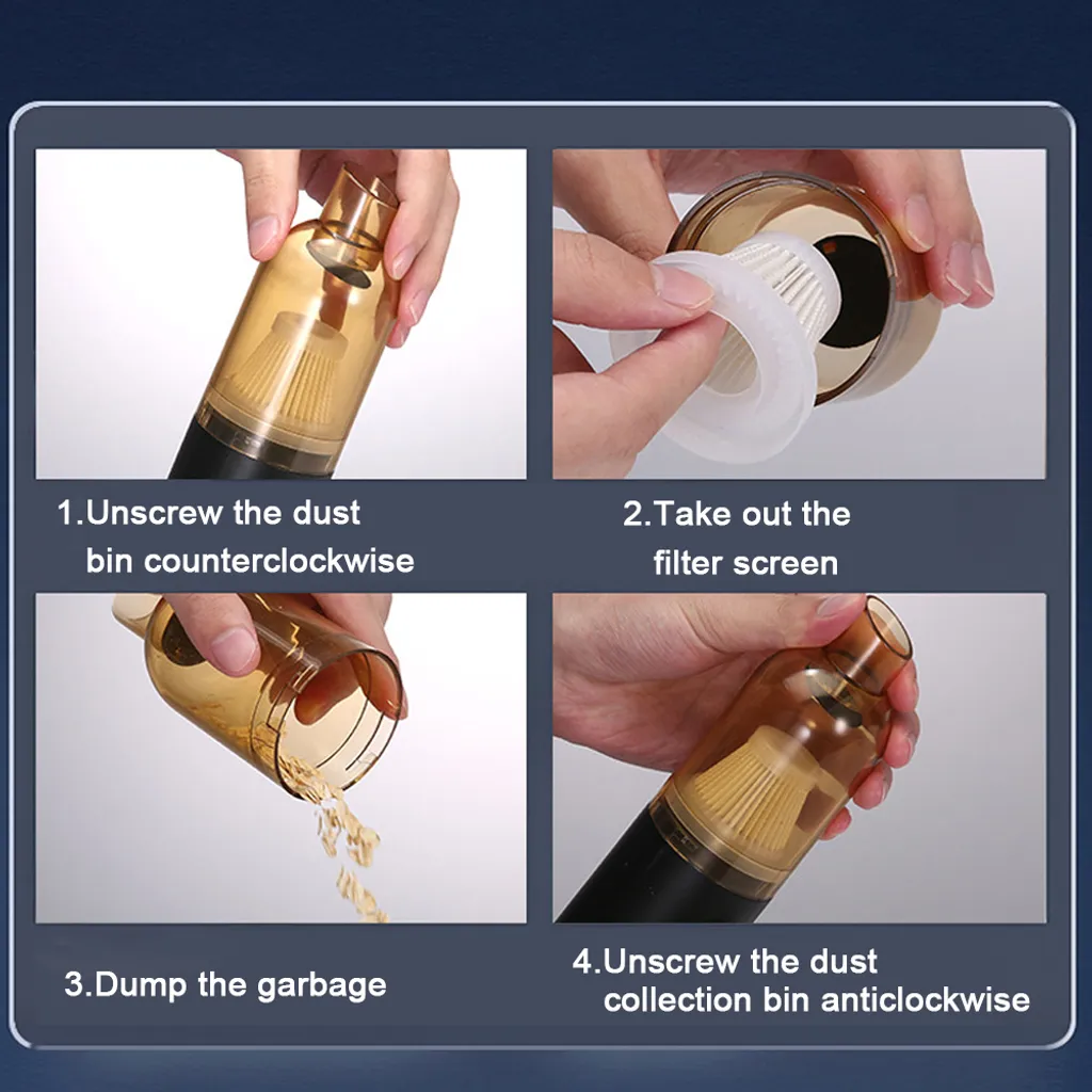 💧【Einfache Reinigung】Waschbarer Filter: Öffnen Sie den Staubtopf und nehmen Sie das Filternetz heraus, dann waschen Sie es mit sauberem Wasser, Sie können es weiter verwenden, nachdem es trocken ist.