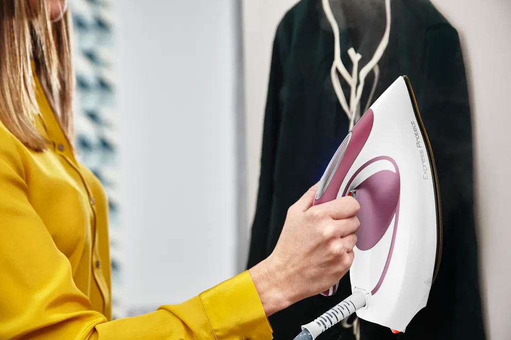 Die Dampfbügelstation Express Protect mit ihrer herausragenden Dampfleistung sorgt für hervorragendeBügelergebnisse und knitterfreie Kleidung. Derherausnehmbare Anti-Kalk-Kollektor erleichtert die Wartung des Systems. Darüber hinaus sorgt diefortschrittliche Durilium Airglide Autoclean-Technologie der Bügelsohle für eine einwandfreieGleitfähigkeit.