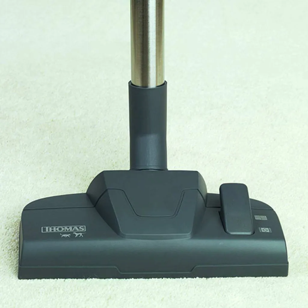 Abgesehen von einer saugstarken Turbobürste gehören zum umfangreichen Standardzubehör des Tierhaarsaugers auch eine umschaltbare Bodendüse für Teppich- und Hartböden, eine extra breite Polsterdüse und eine extra 360 mm lange Fugendüse. Zur Nassreinigung eine Sprühex-Teppich und Sprühex-Polsterdüse inkl. THOMAS ProTex Reinigungskonzentrat. Für das schnelle saugen zwischendurch liegt ein XXL-Staubbeutel bei.