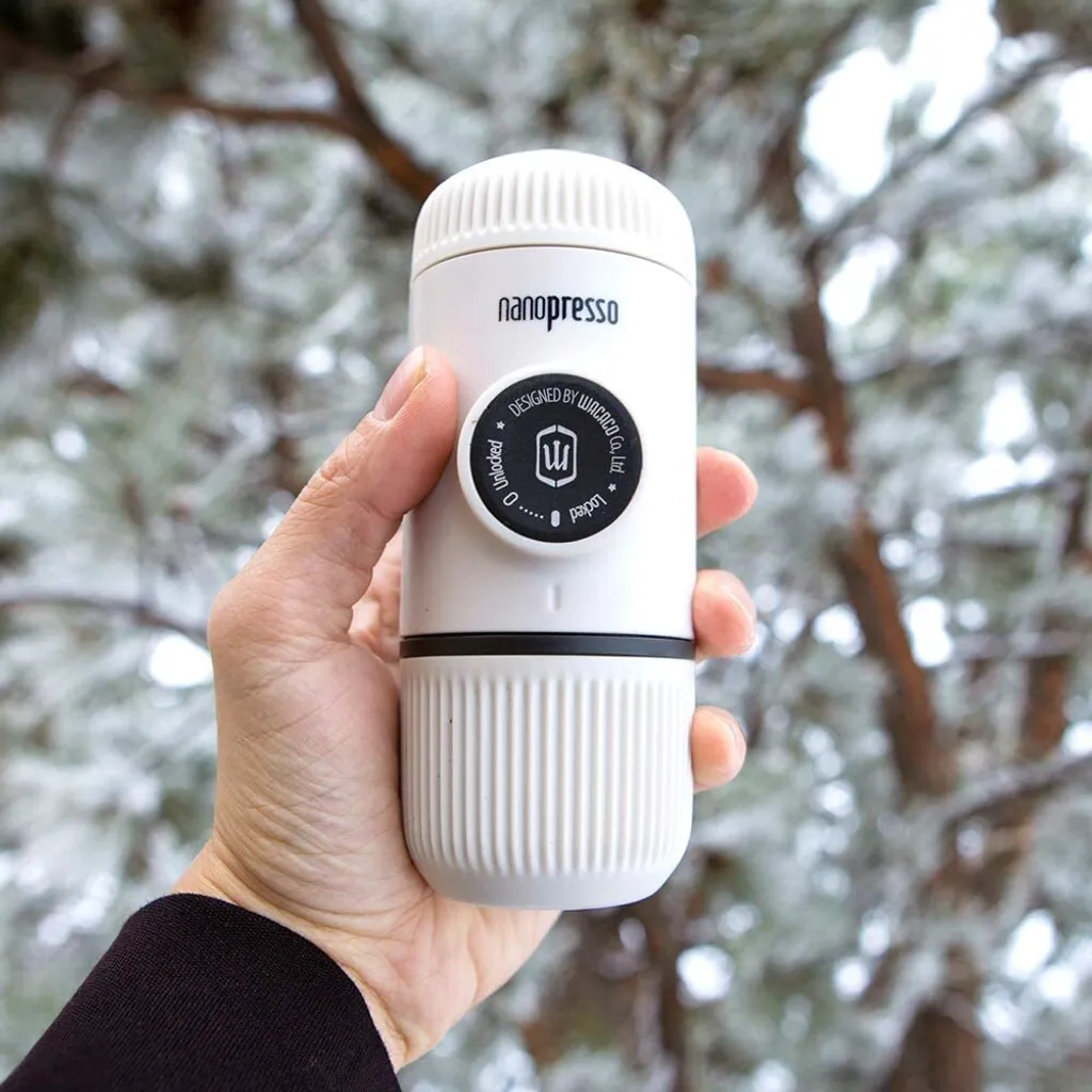 WACACO Nanopresso Tragbare Espressomaschine, Mit Nanopresso-Etui, Upgrade-Version Von Minipresso, Reisekaffeemaschine, Kaffee-To-Go, Manuell Betrieben, Weiß, Nachhaltig