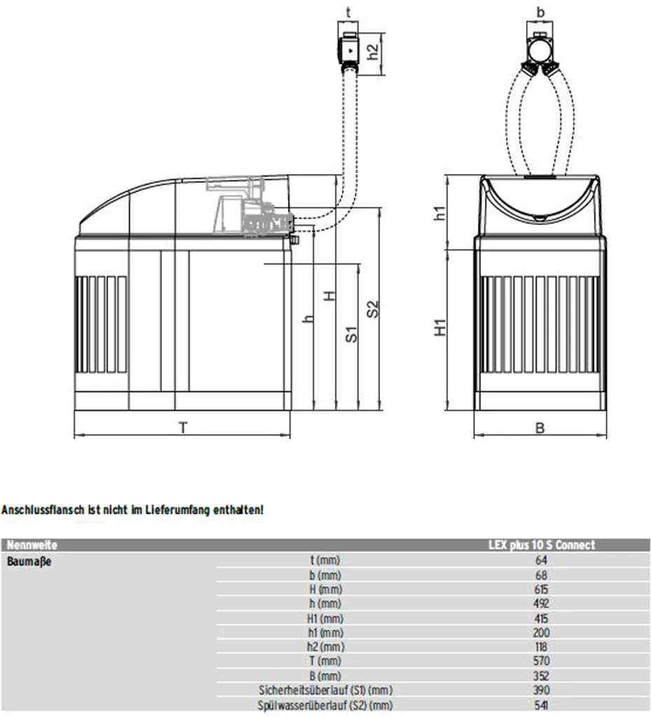 Den DRUFI lösen, die Anschlussarmatur mit integrierter Verschneideeinrichtung anflanschen, DRUFI wieder montieren und die beiden Schläuche der LEX Plus 10 Connect S anschließen, ein zusätzlicher Flansch wird nicht benötigt.