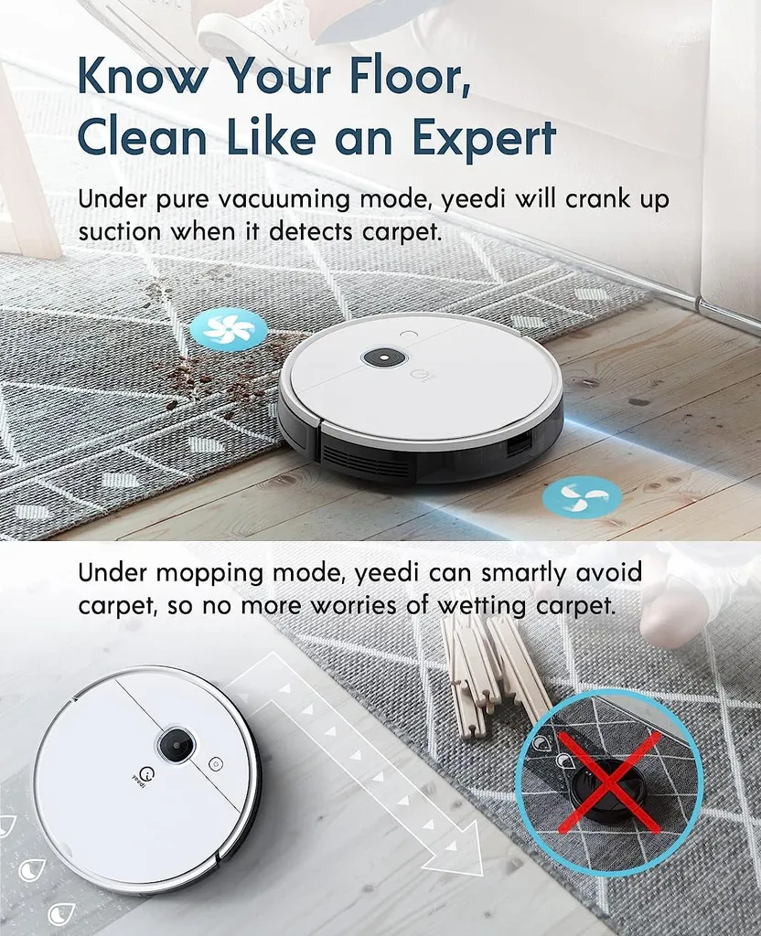 3-Mithilfe seiner hohen Saugkraft und seines intelligenten Wischsystems saugt und wischt yeedi gleichzeitig, sodass Ihre Böden in nur einem Durchgang zweifach gereinigt werden.